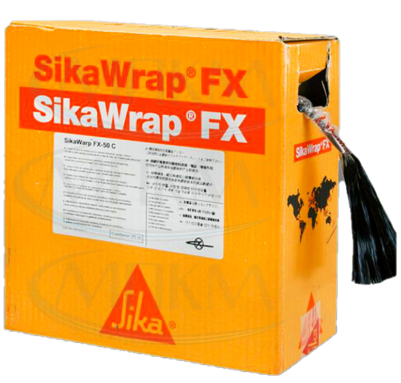 Приклеивание продольных лент внешнего армирования CarboDur в растянутой зоне элемента для повышения несущей способности сечения. Так же возможно применение тканных холстов из углеродного волокна SikaWrap.